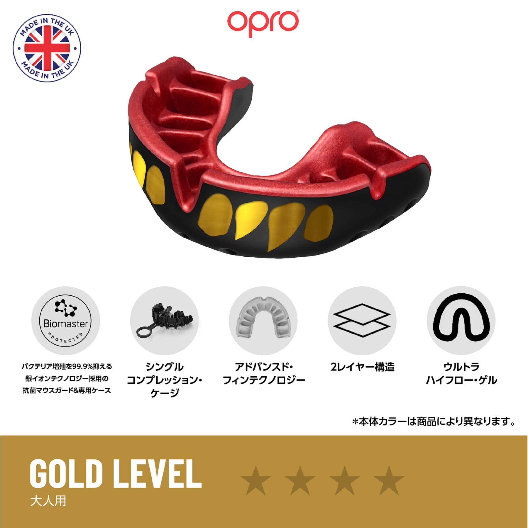 OPRO マウスガード「ゴールド」レベル | 大人用/Jawz/黒•金&赤