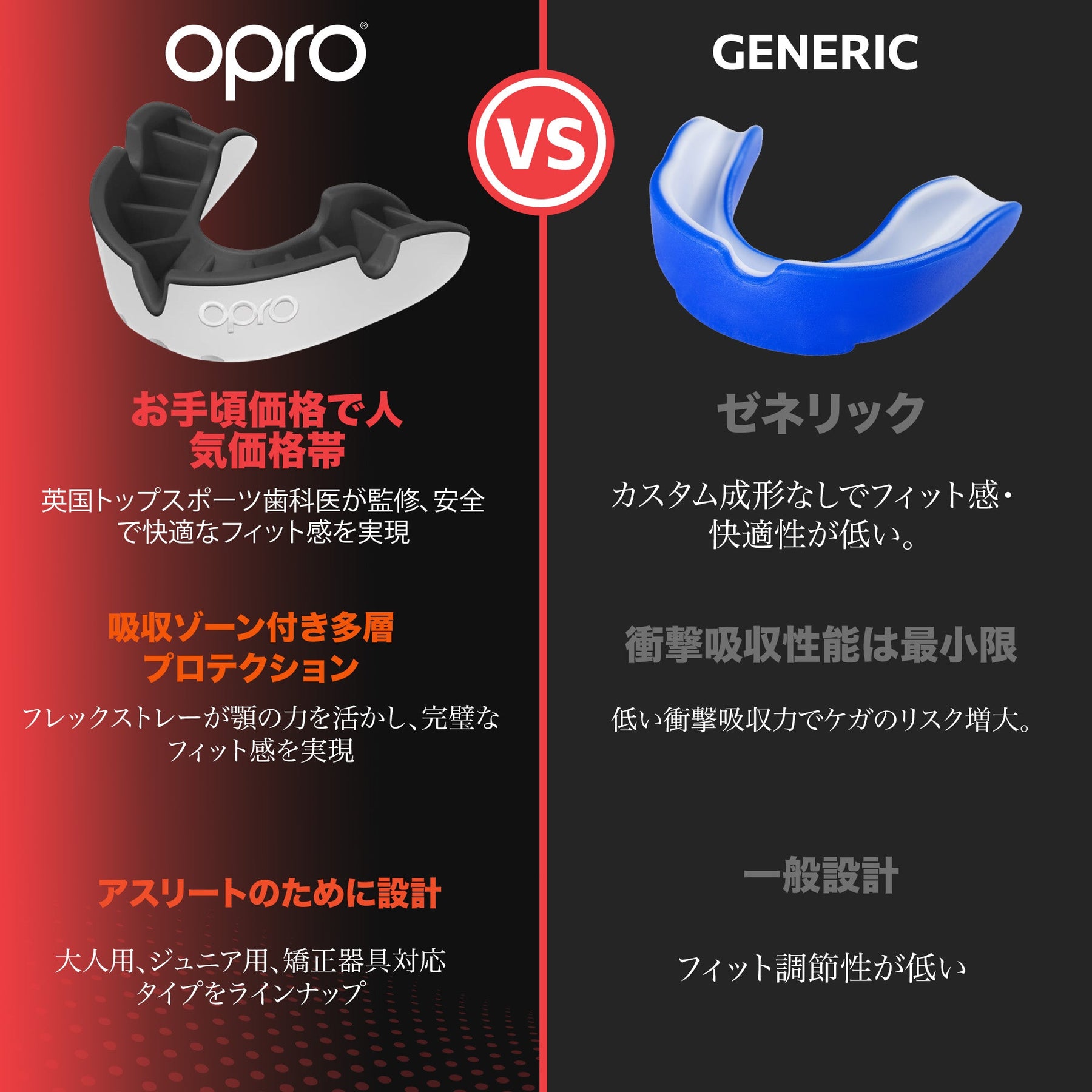 守られていると感じれば、もう誰もあなたを止めることはできません。OPROシルバーレベルのマウスガードは、スポーツ時における歯のケガを減らすために、衝撃を和らげ、軽減する2レイヤー構造となっています。
